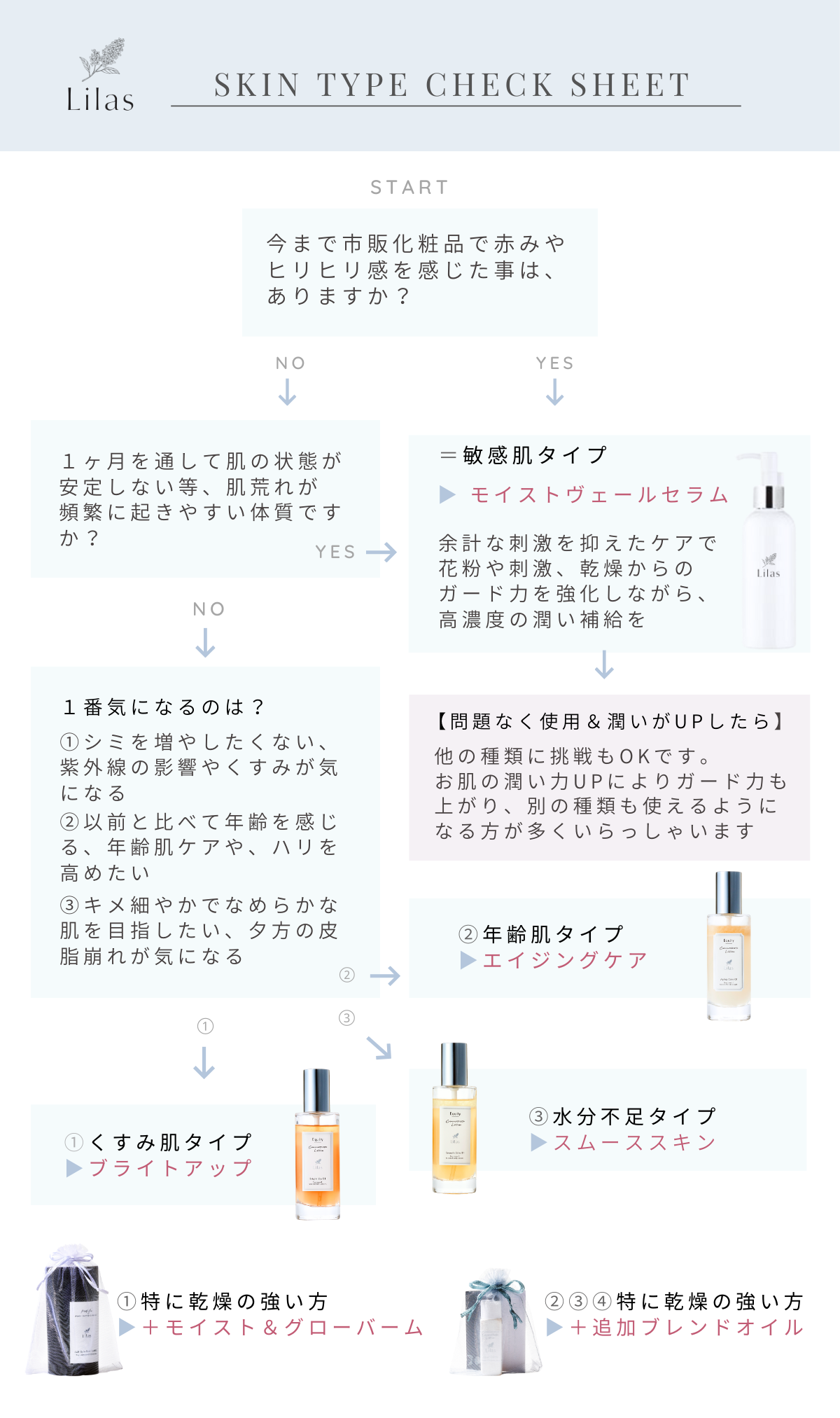 肌タイプチェックシートに沿って進んでいただくことで、4つの肌タイプの中から、